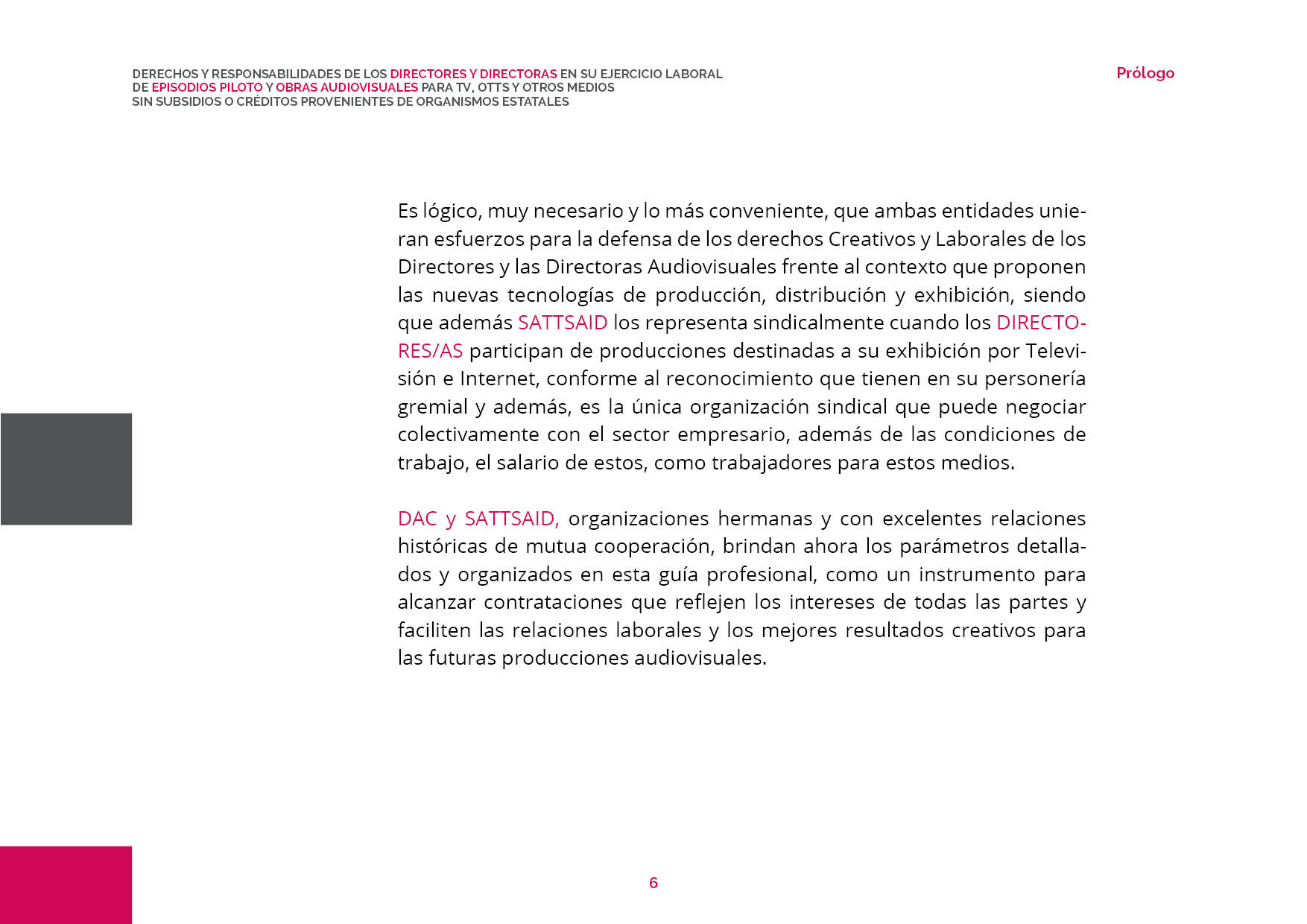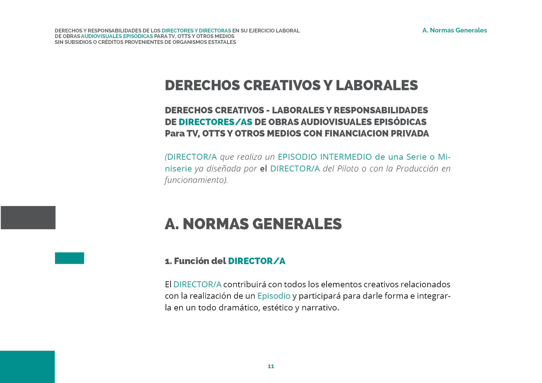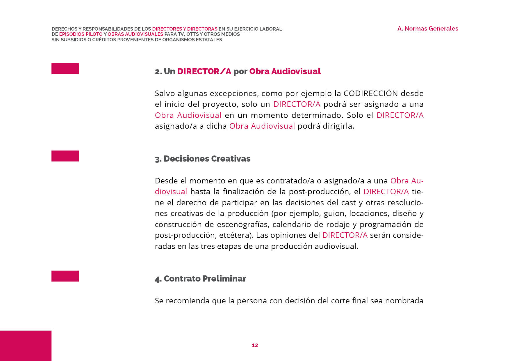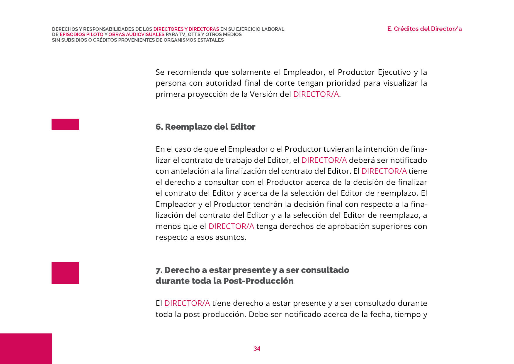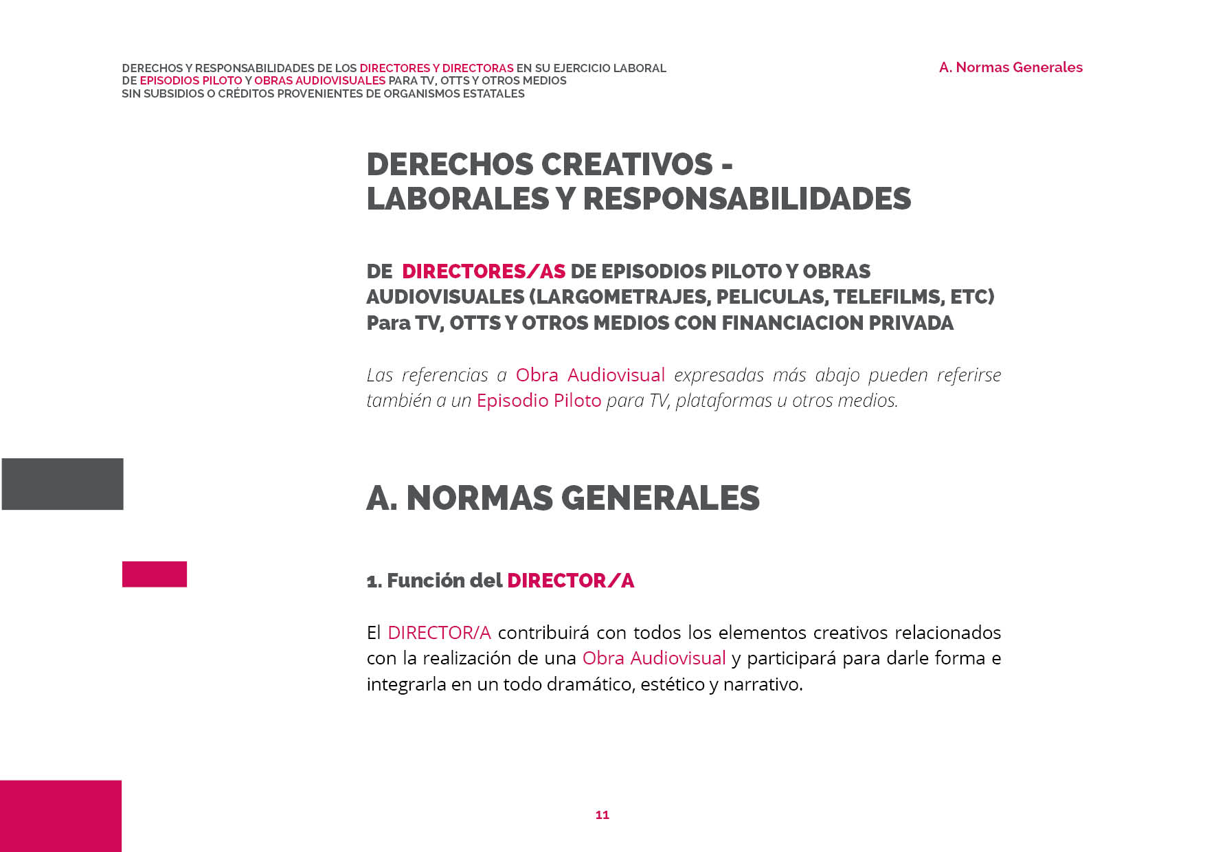 Y DE DERECHOS CREATIVOS Y LABORALES PARA LOS DIRECTORES Y DIRECTORAS AUDIOVISUALES.
