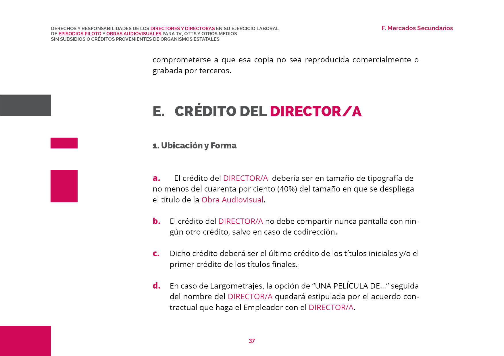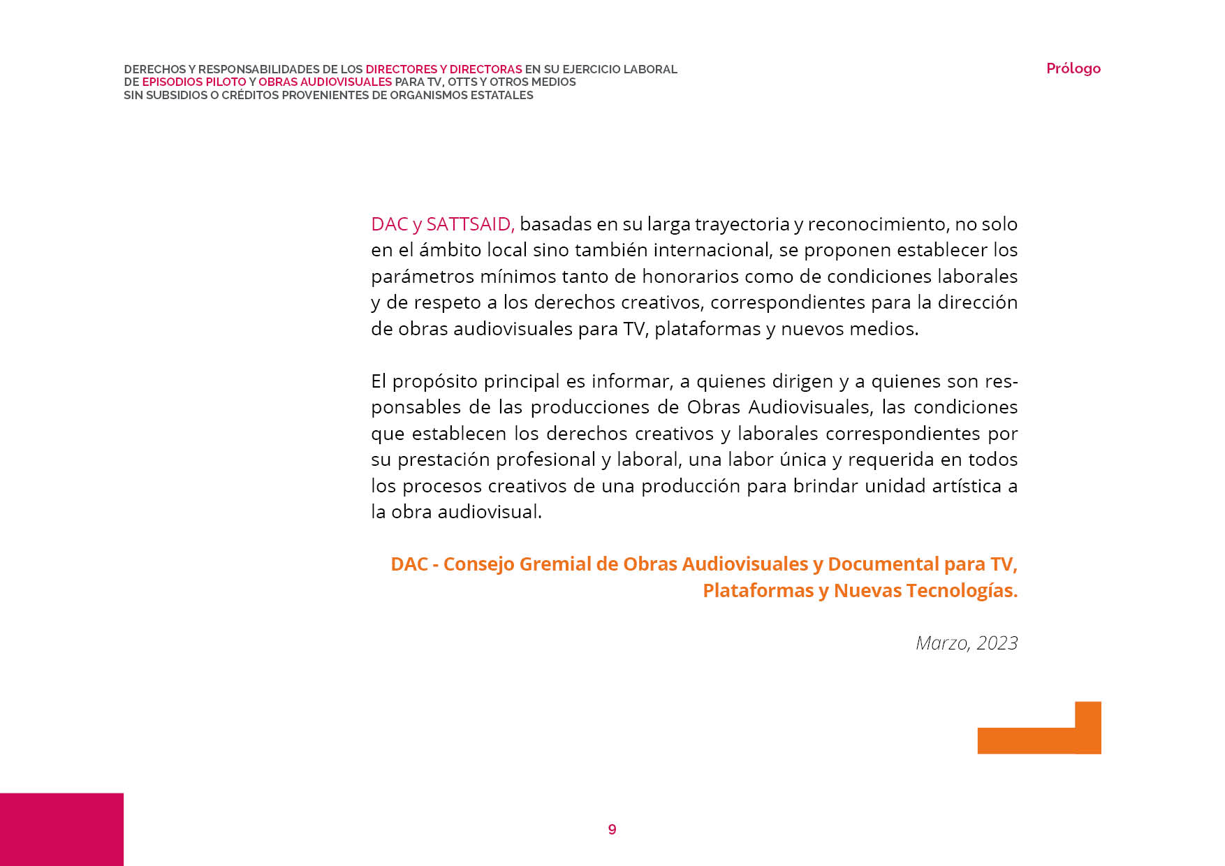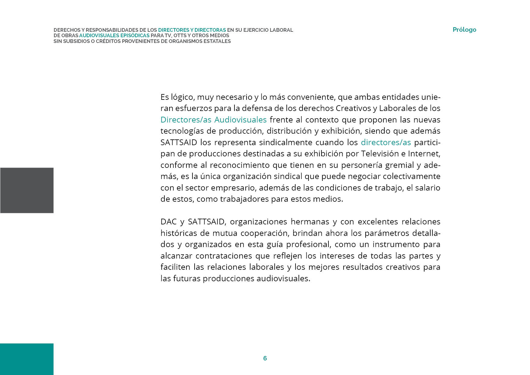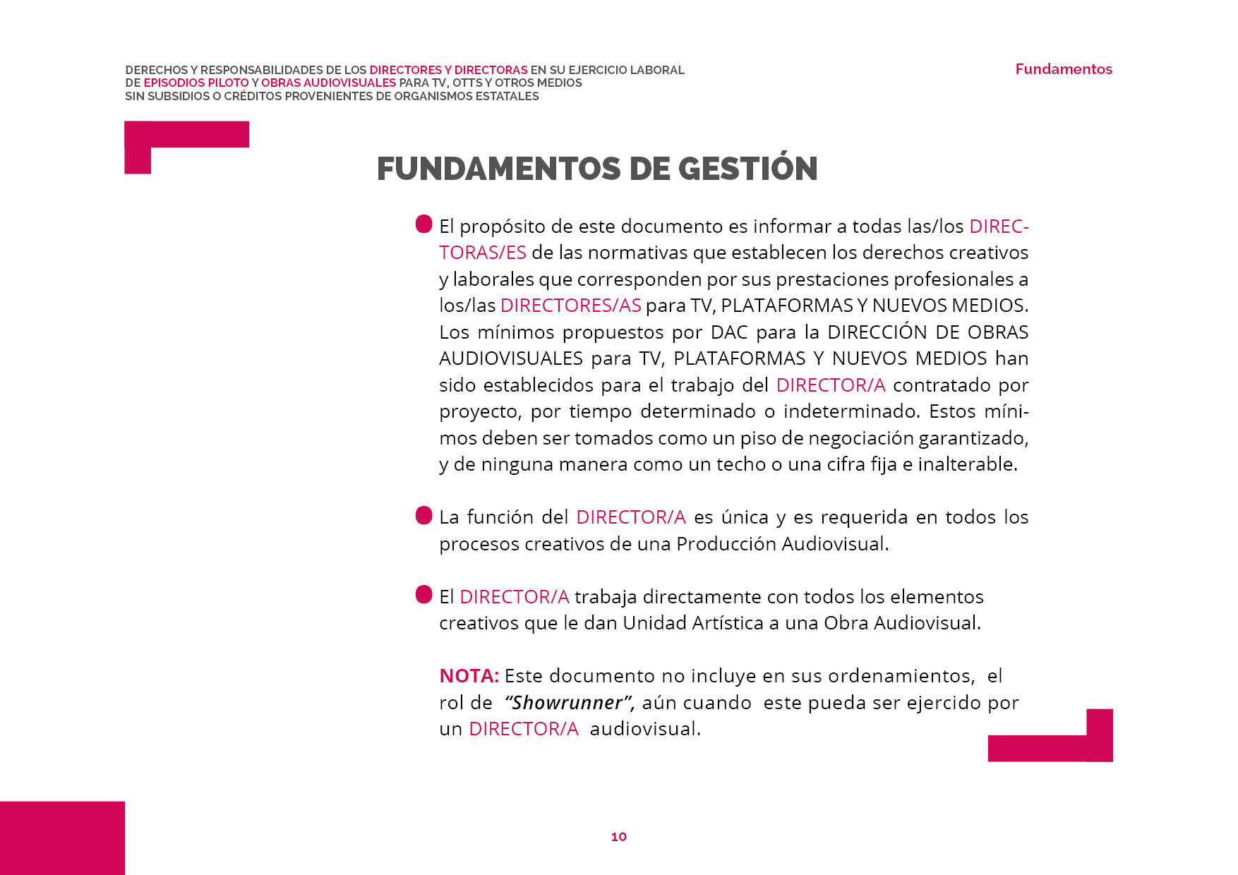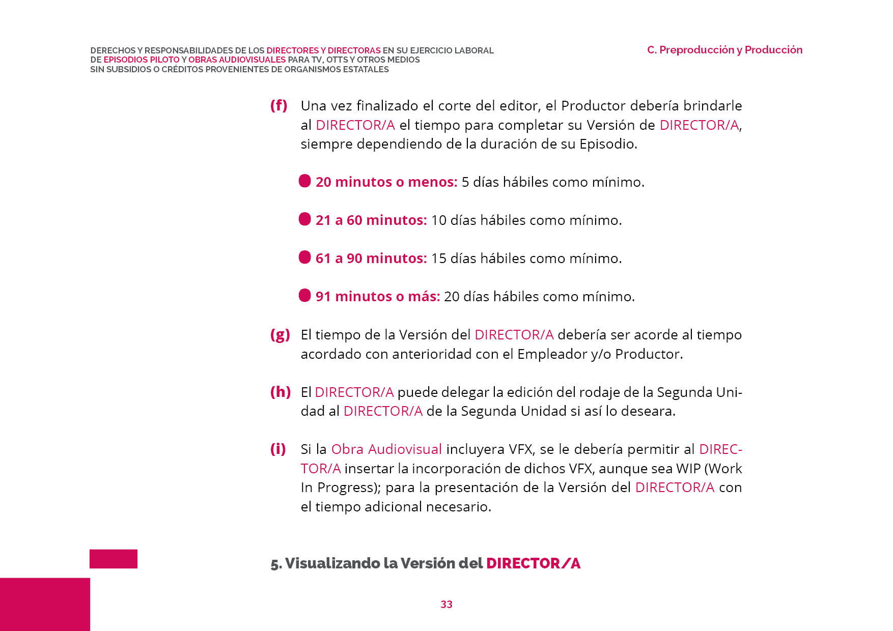 Y DE DERECHOS CREATIVOS Y LABORALES PARA LOS DIRECTORES Y DIRECTORAS AUDIOVISUALES.