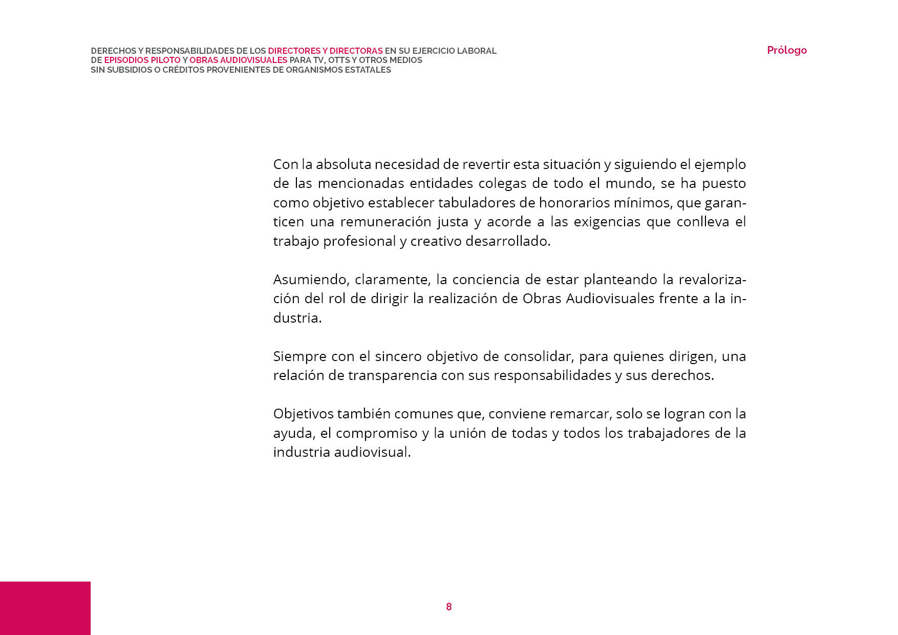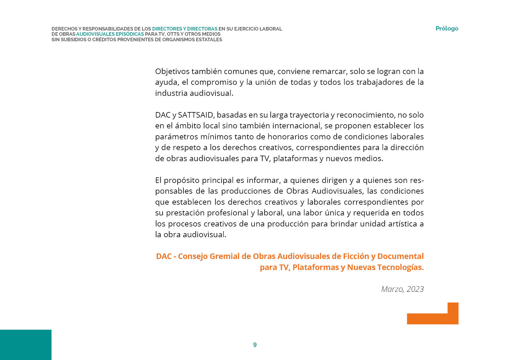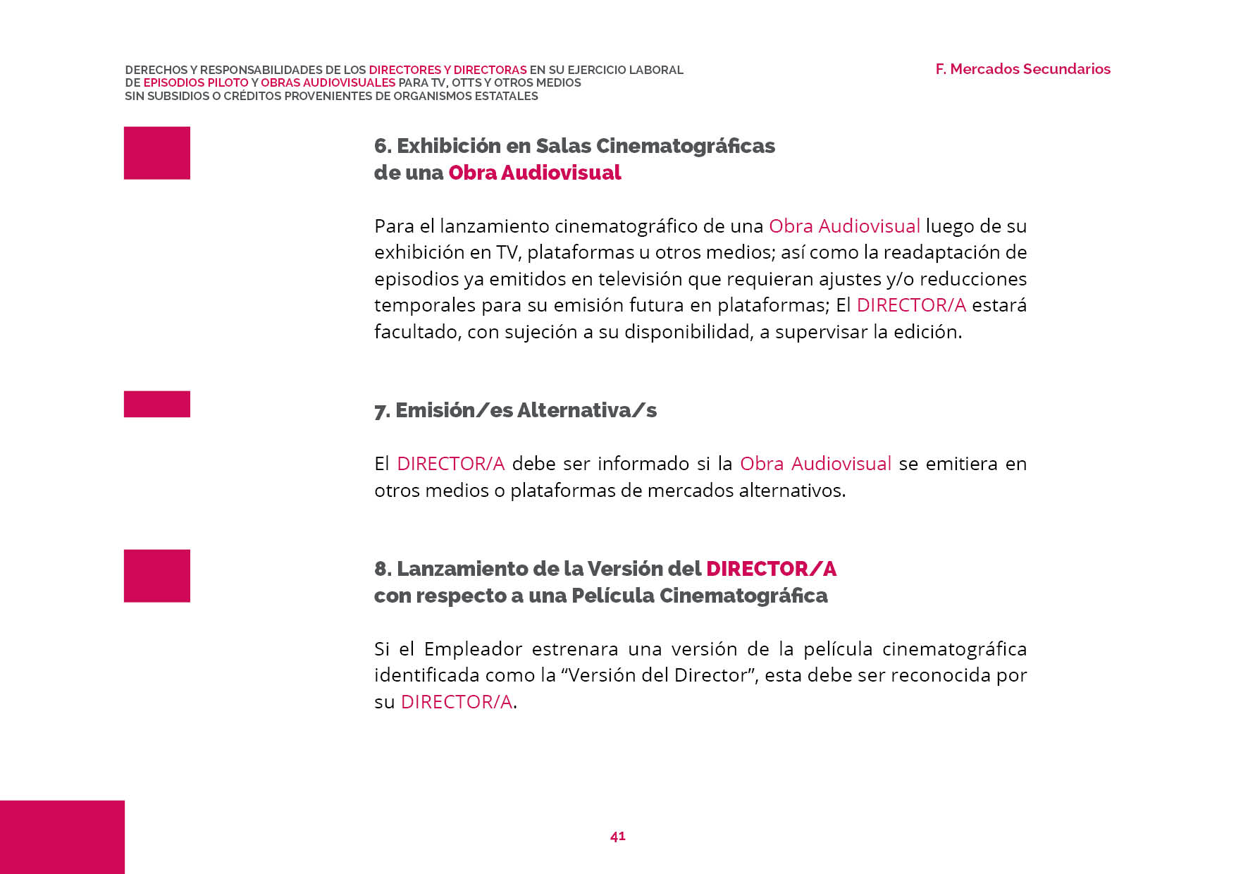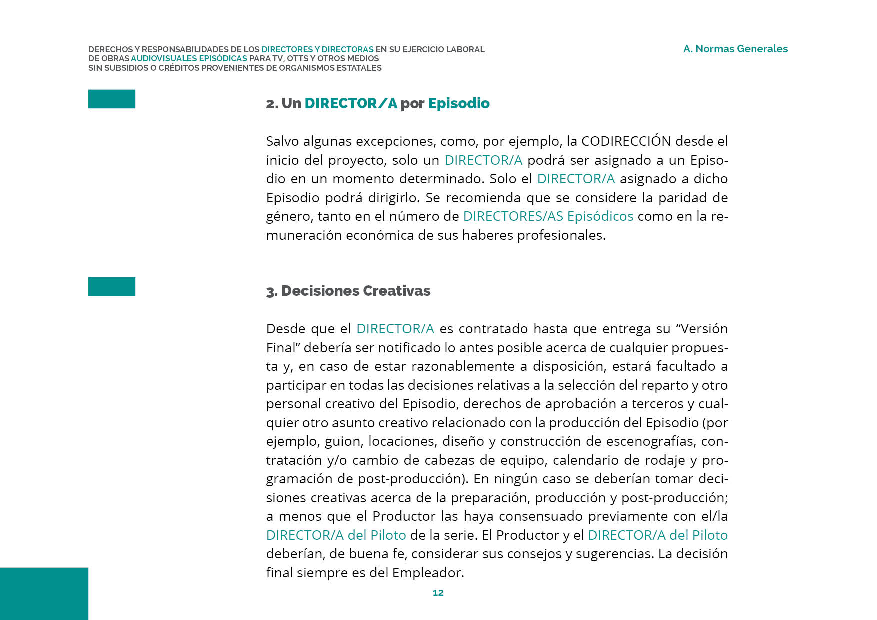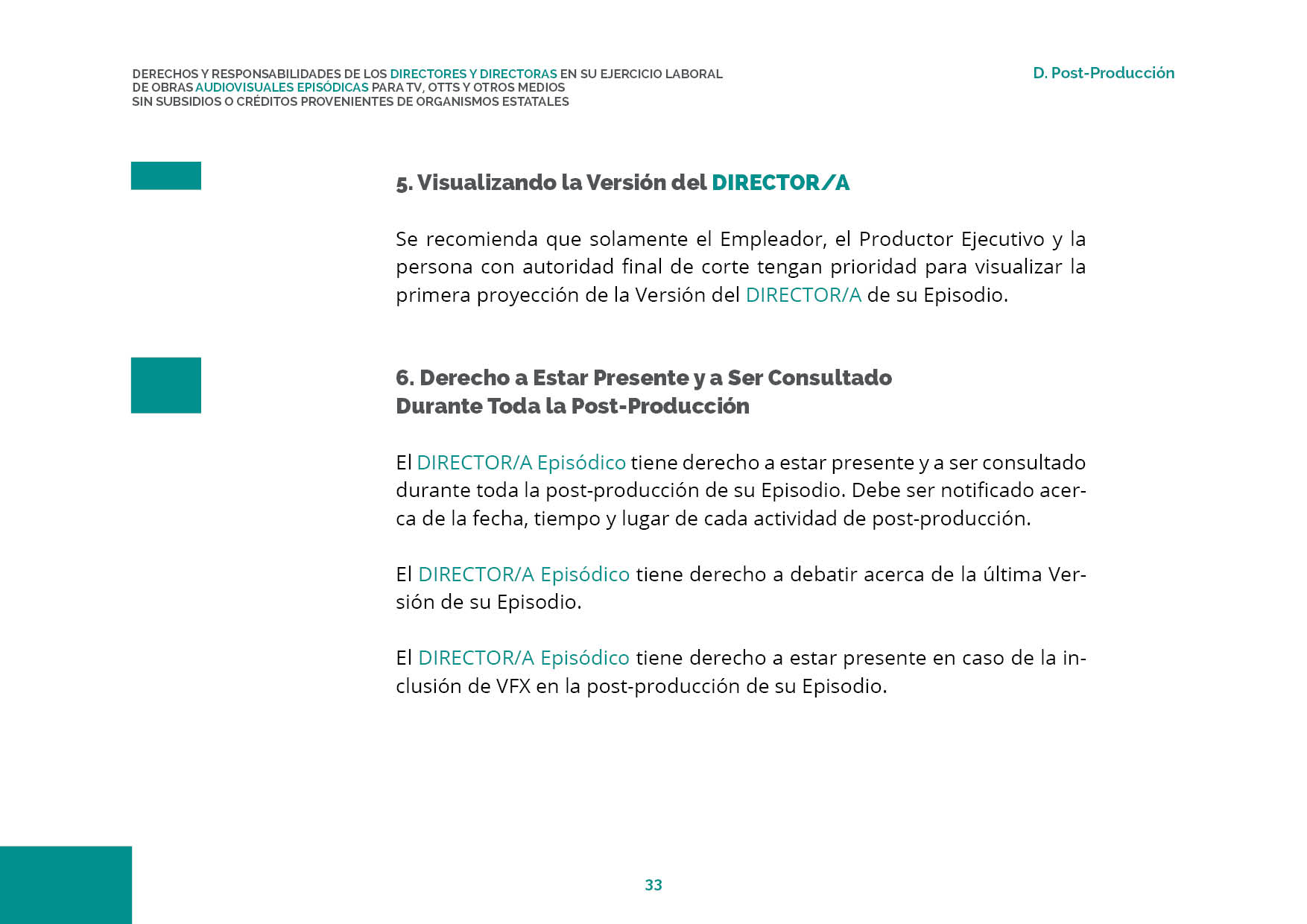Y DE DERECHOS CREATIVOS Y LABORALES PARA LOS DIRECTORES Y DIRECTORAS AUDIOVISUALES.