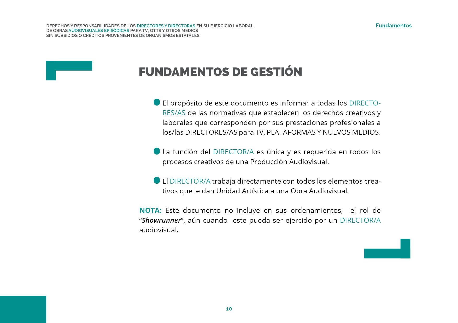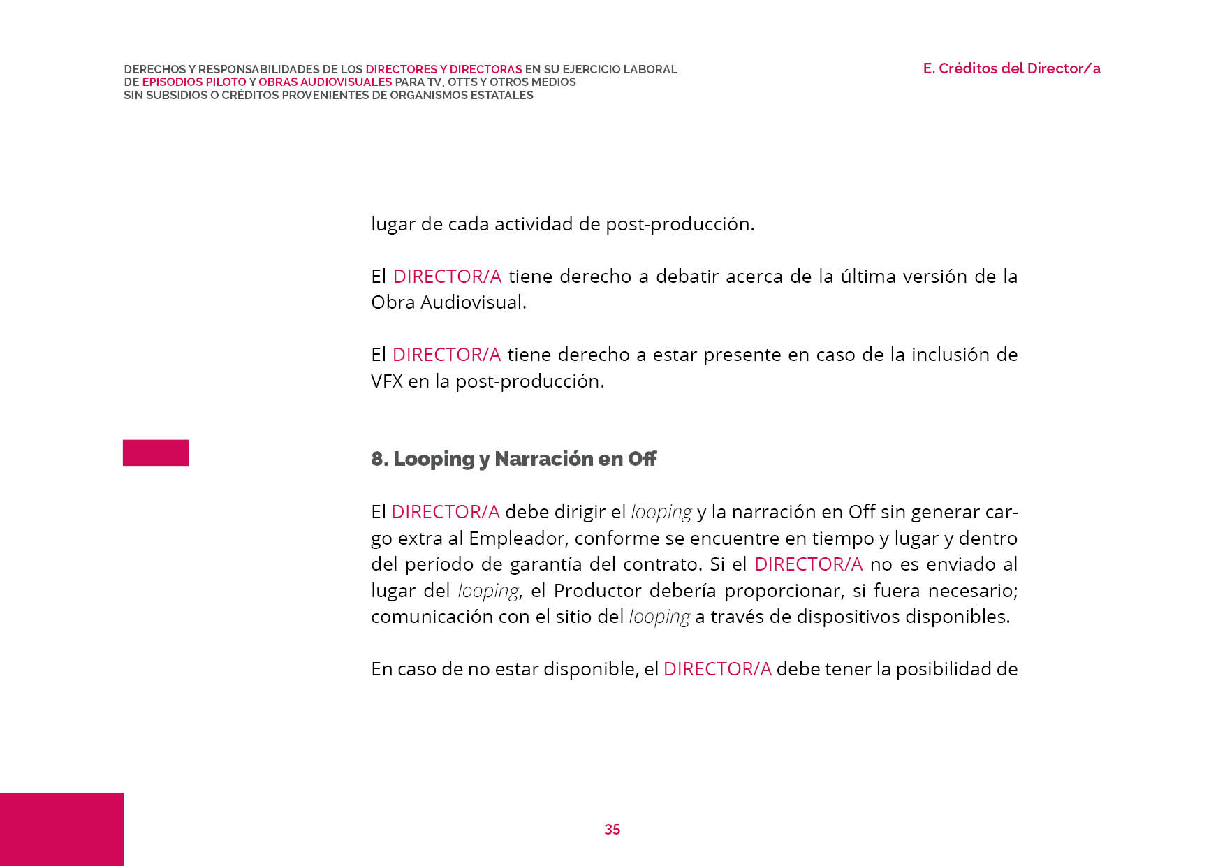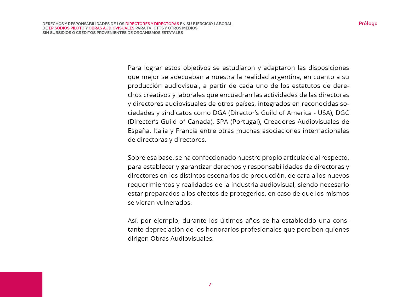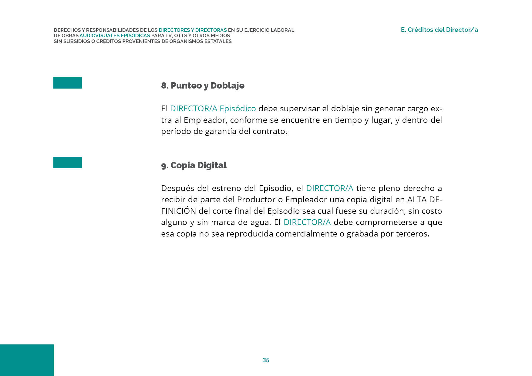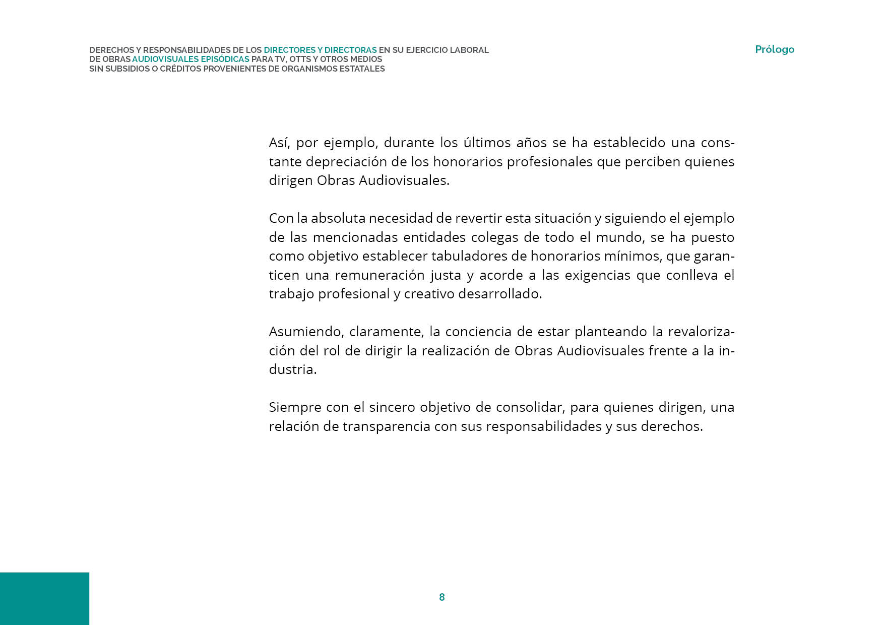 Y DE DERECHOS CREATIVOS Y LABORALES PARA LOS DIRECTORES Y DIRECTORAS AUDIOVISUALES.