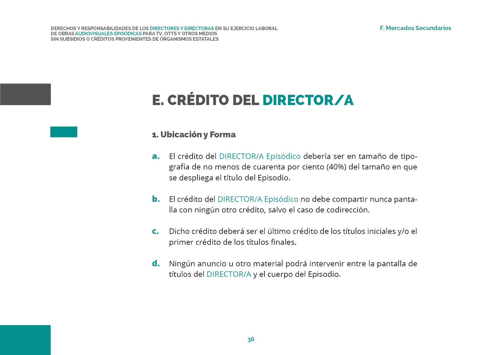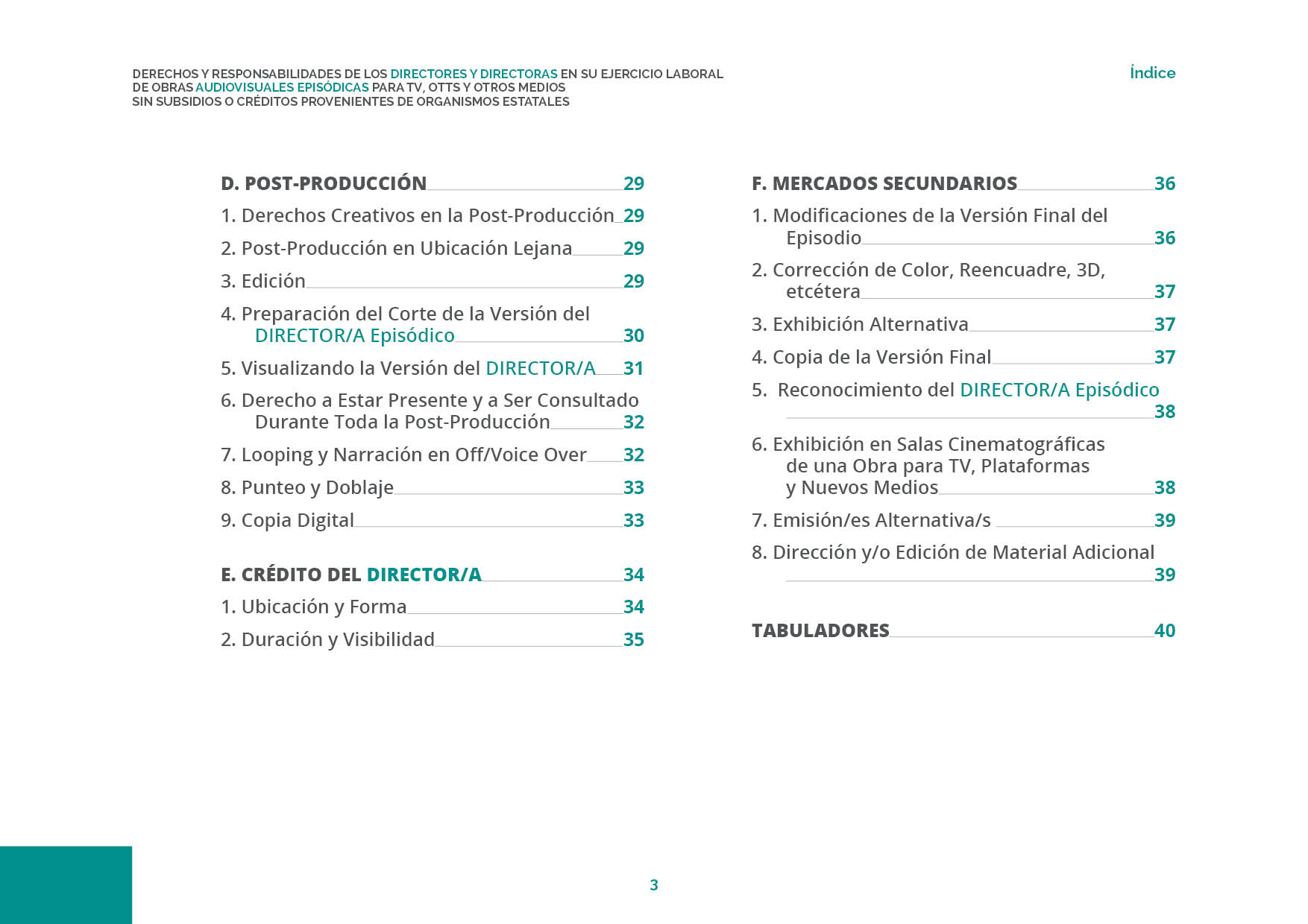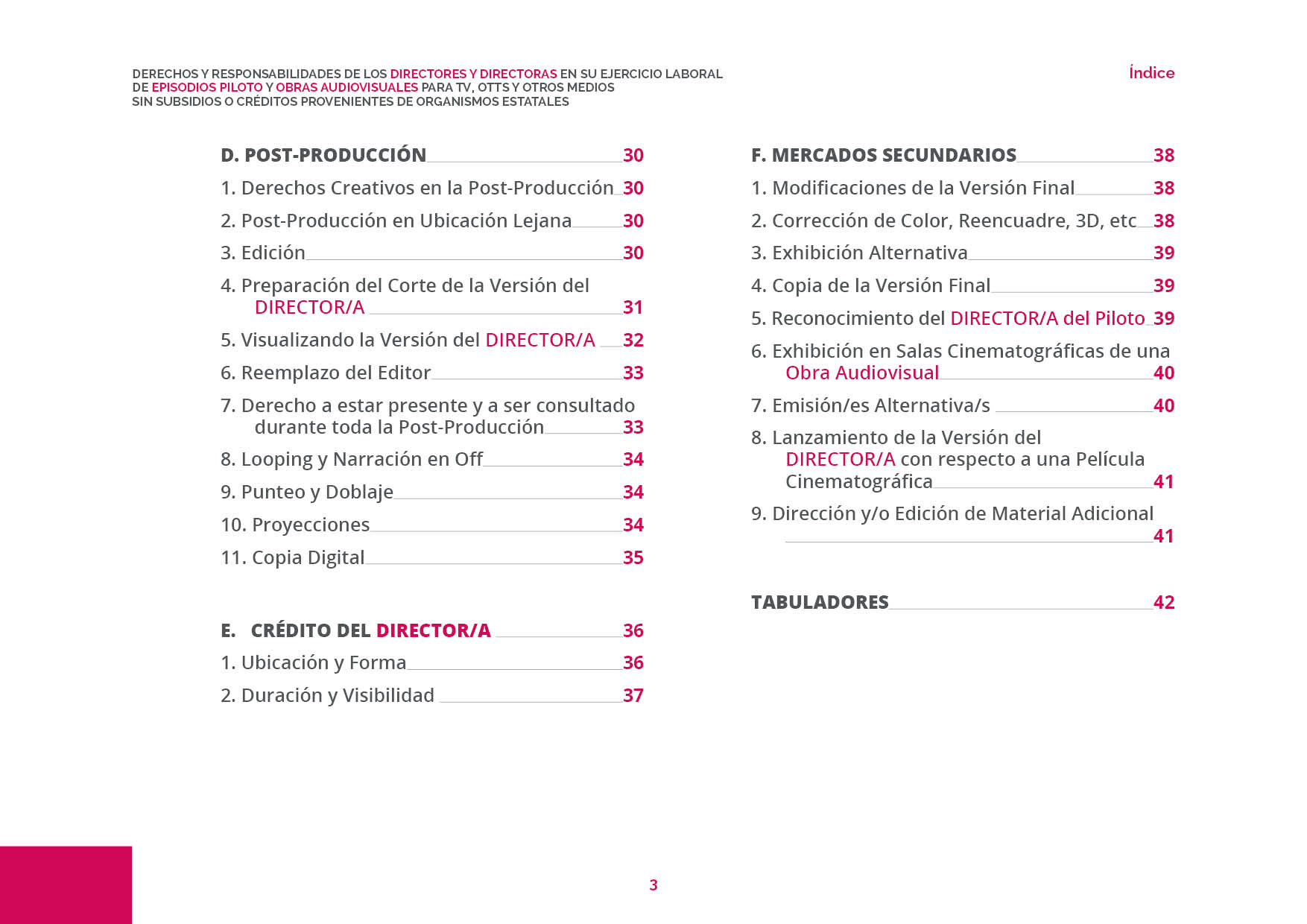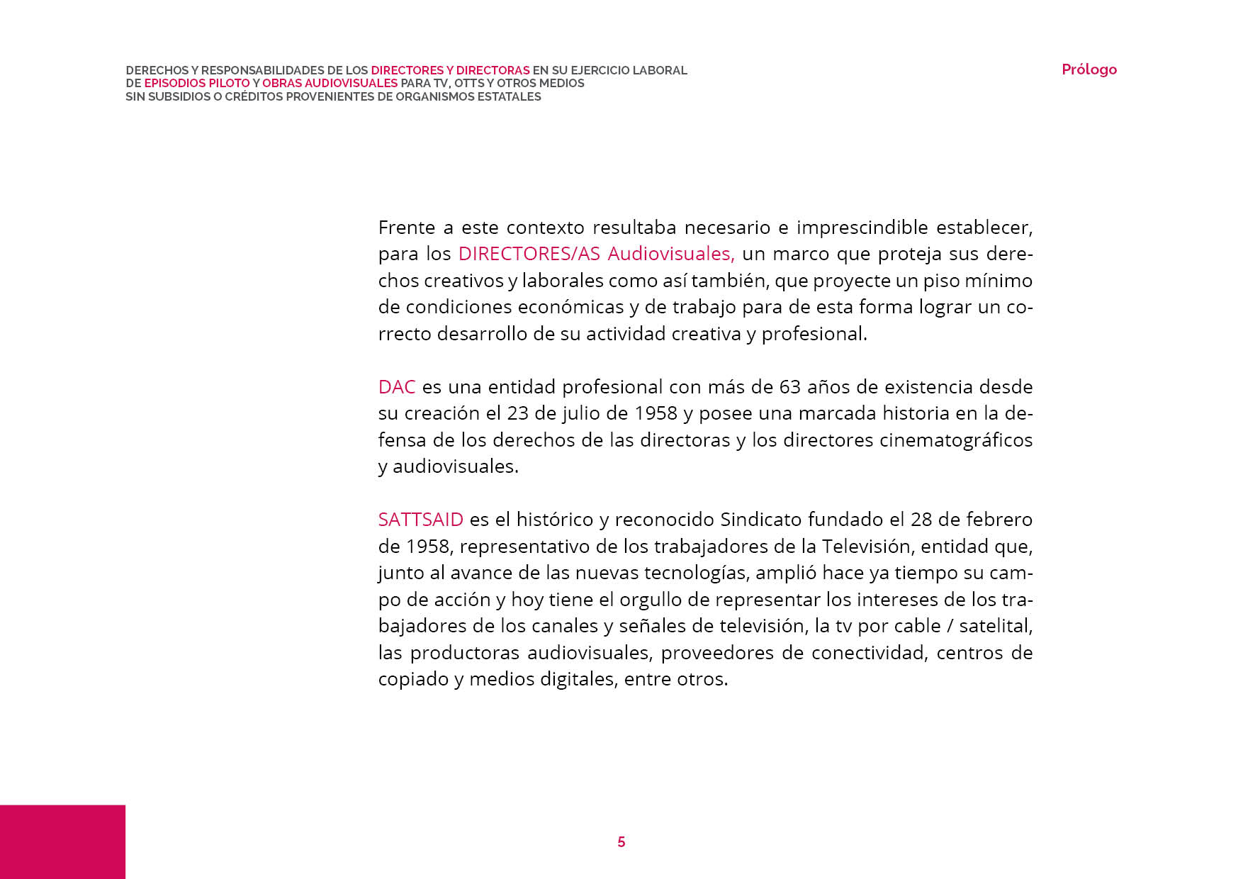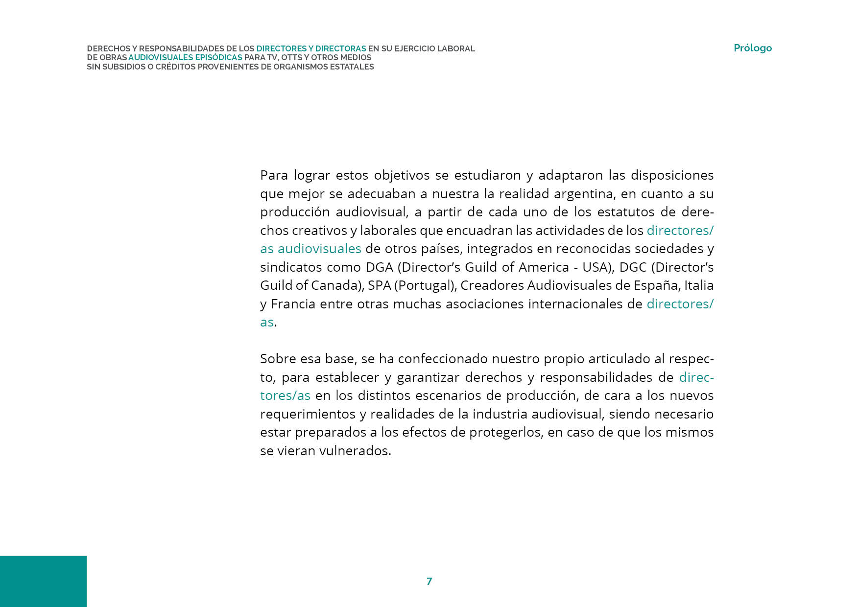 Y DE DERECHOS CREATIVOS Y LABORALES PARA LOS DIRECTORES Y DIRECTORAS AUDIOVISUALES.