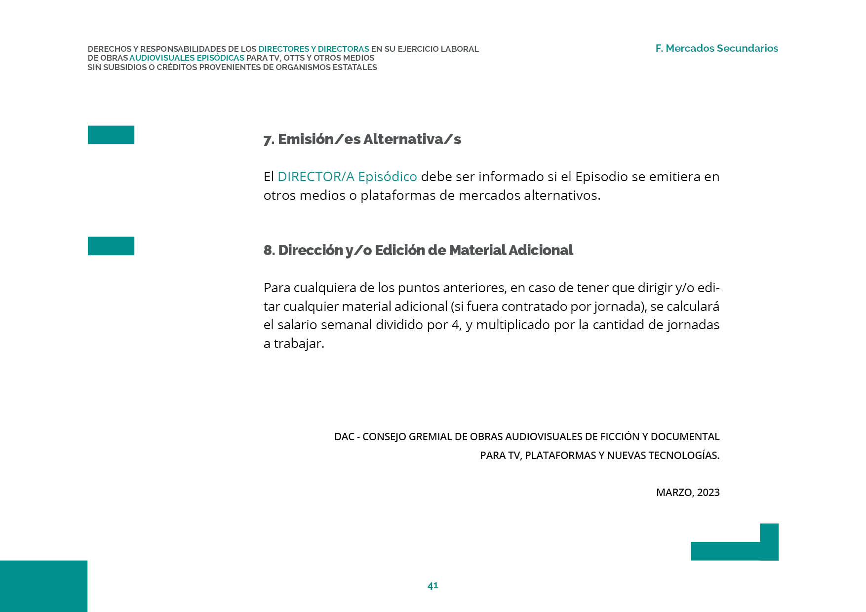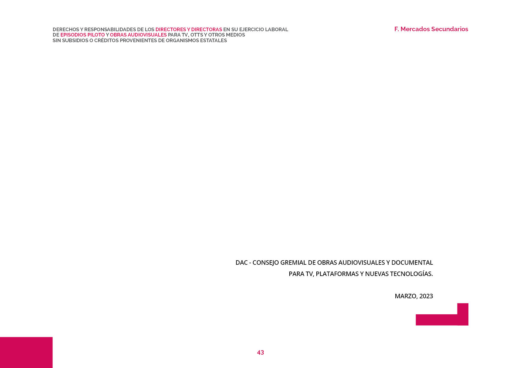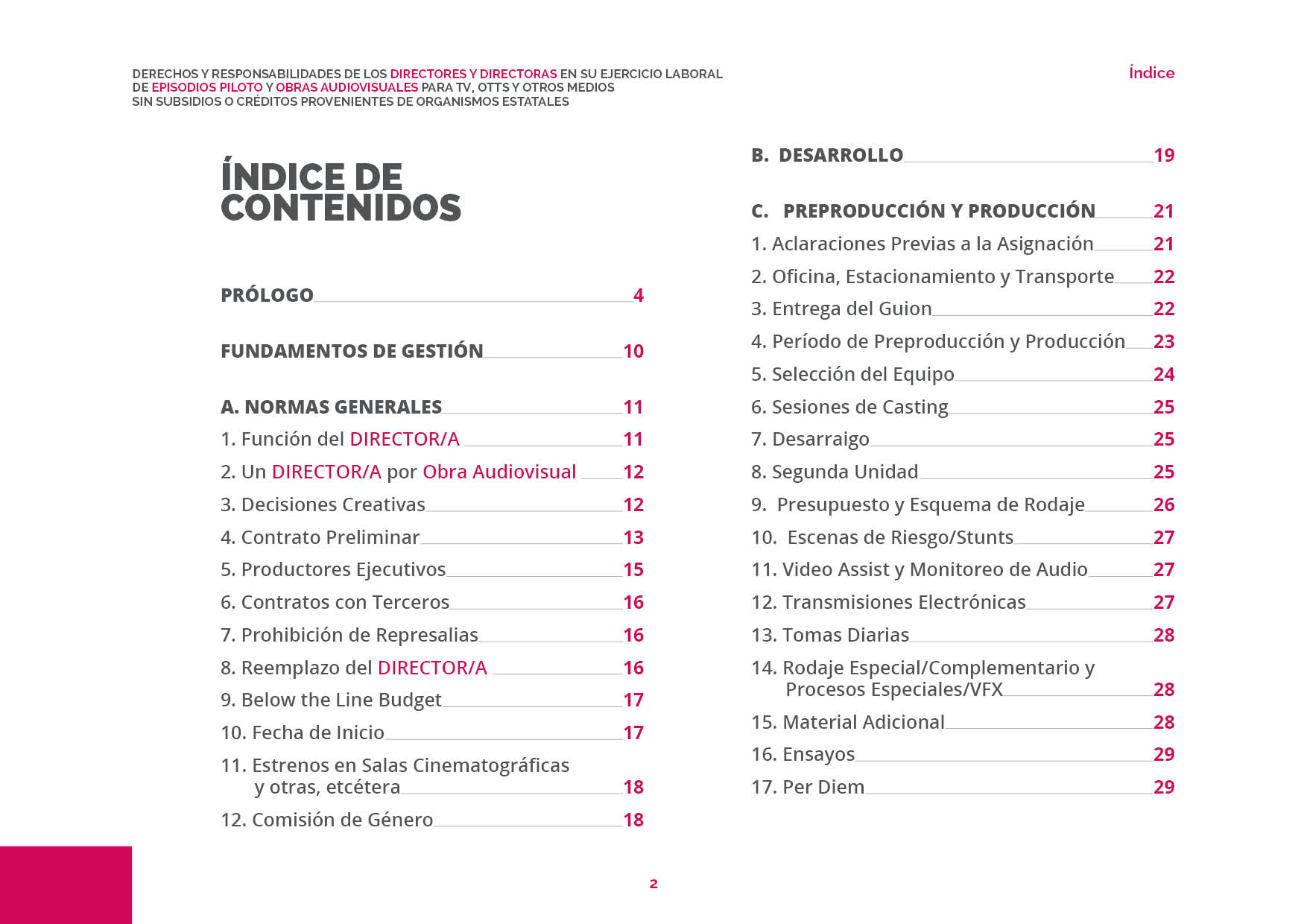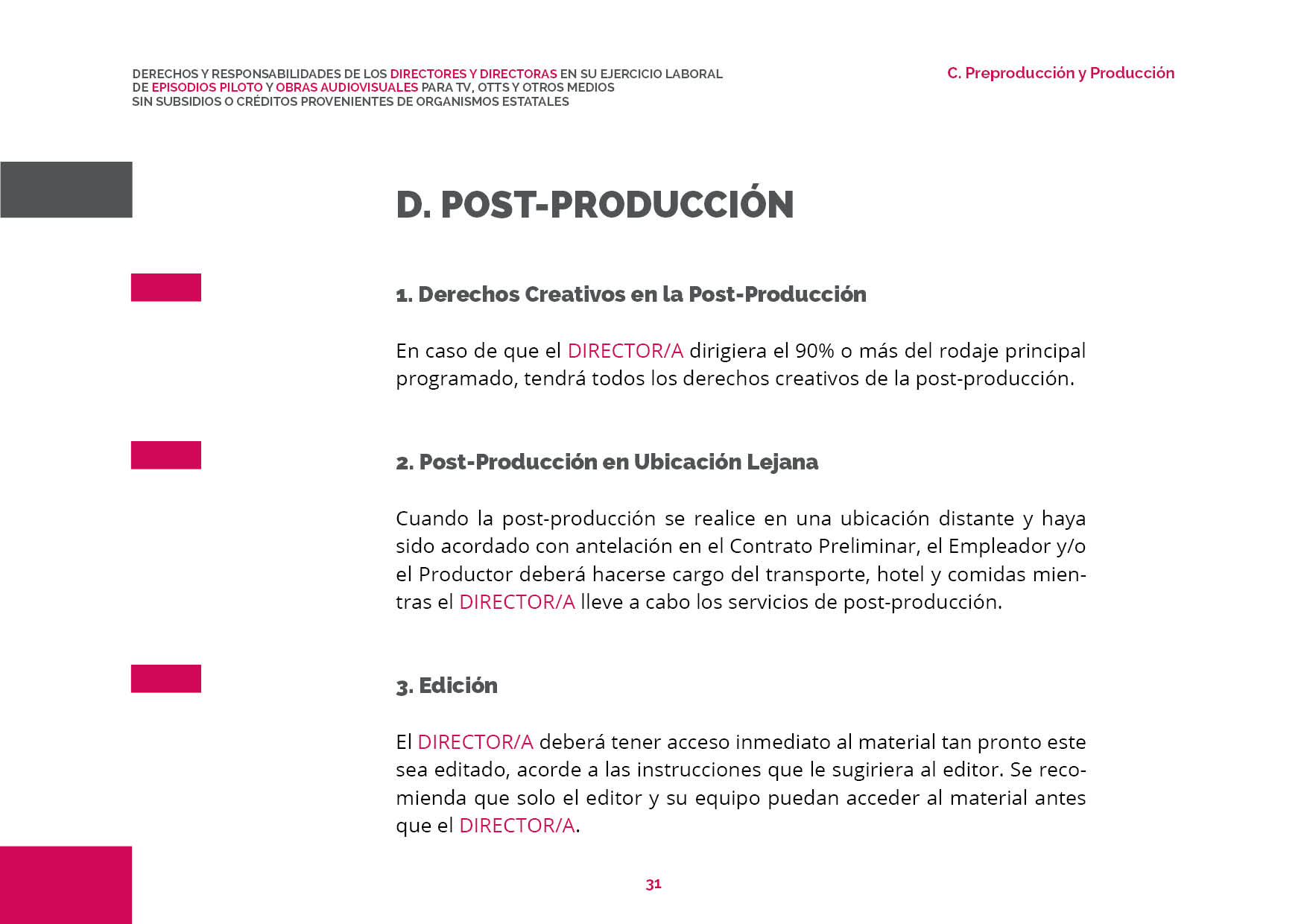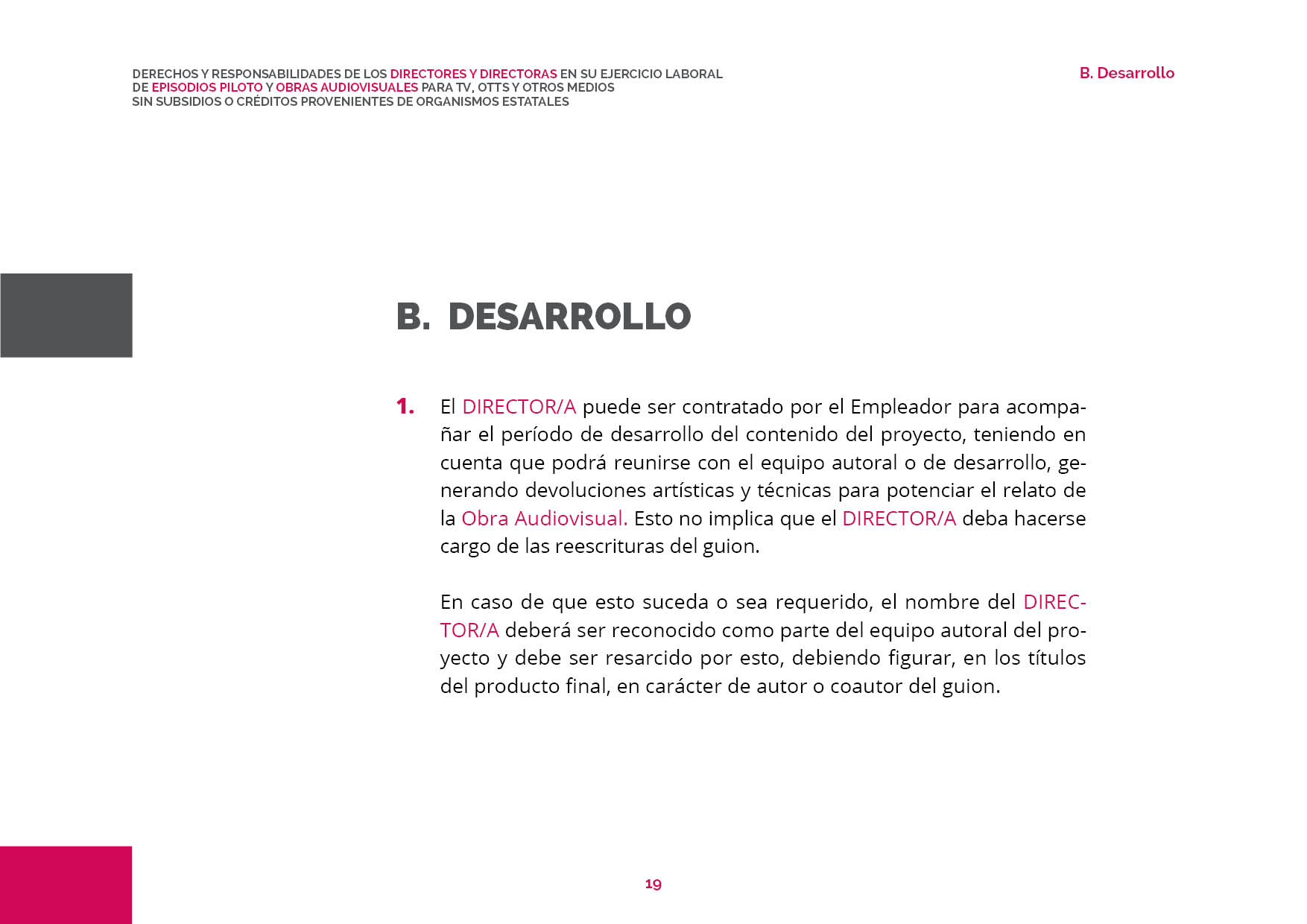 Y DE DERECHOS CREATIVOS Y LABORALES PARA LOS DIRECTORES Y DIRECTORAS AUDIOVISUALES.