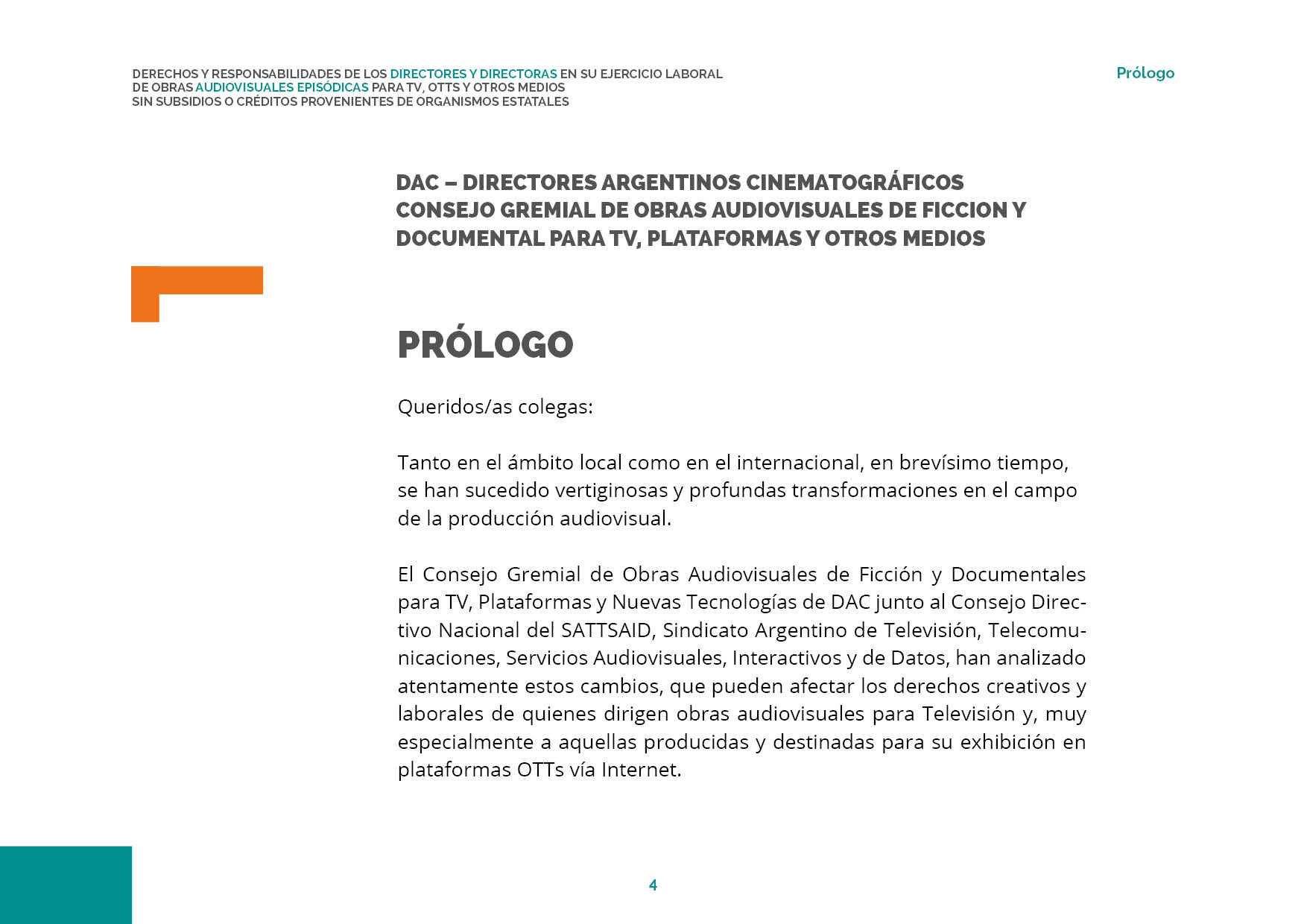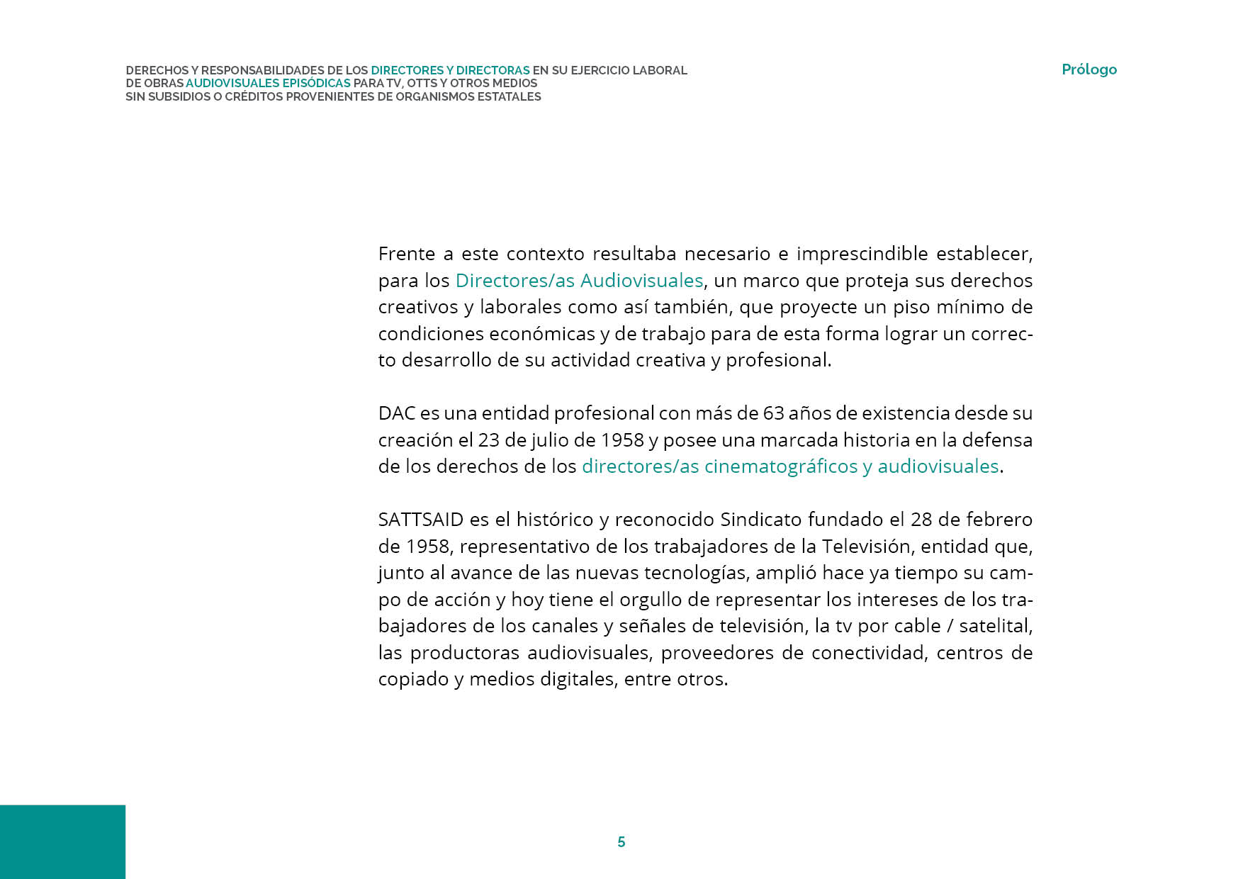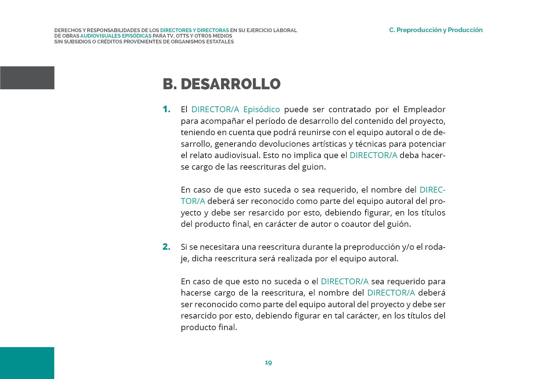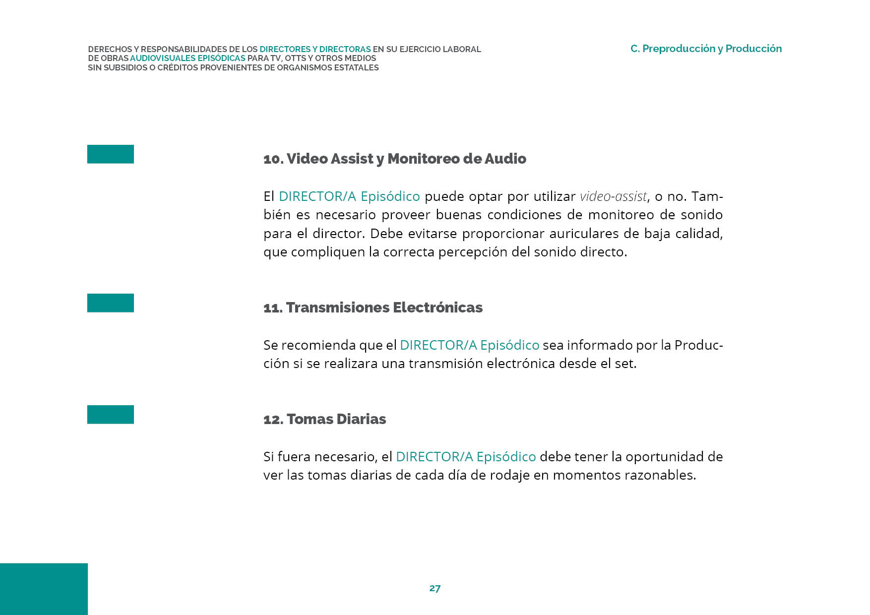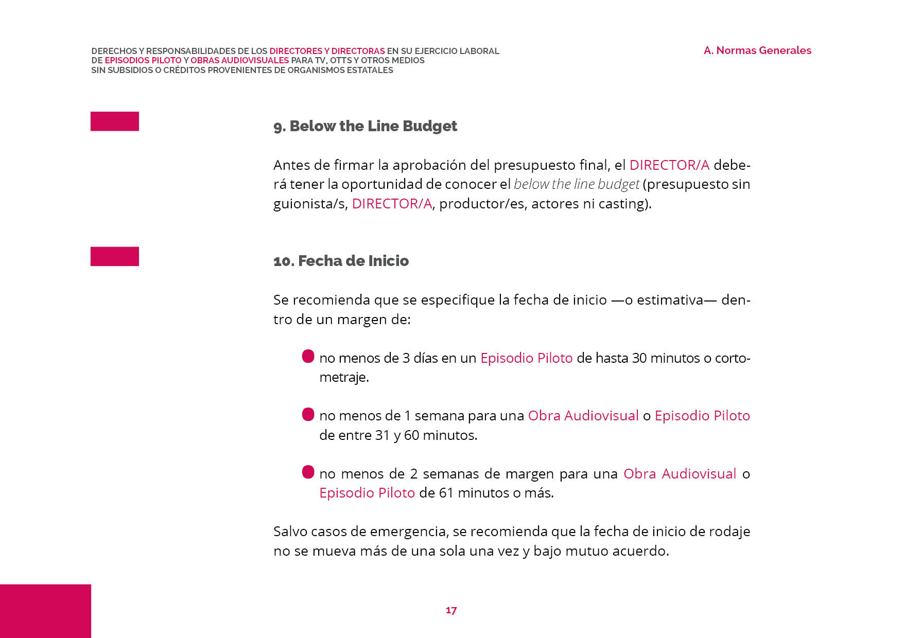 Y DE DERECHOS CREATIVOS Y LABORALES PARA LOS DIRECTORES Y DIRECTORAS AUDIOVISUALES.