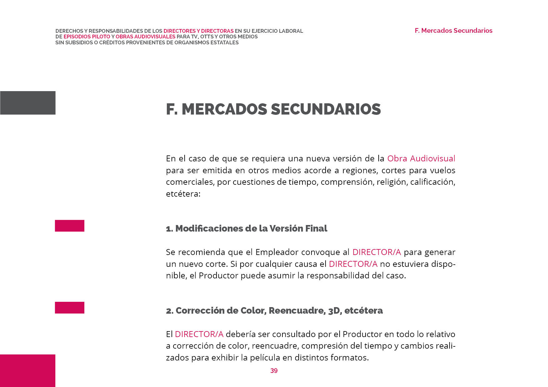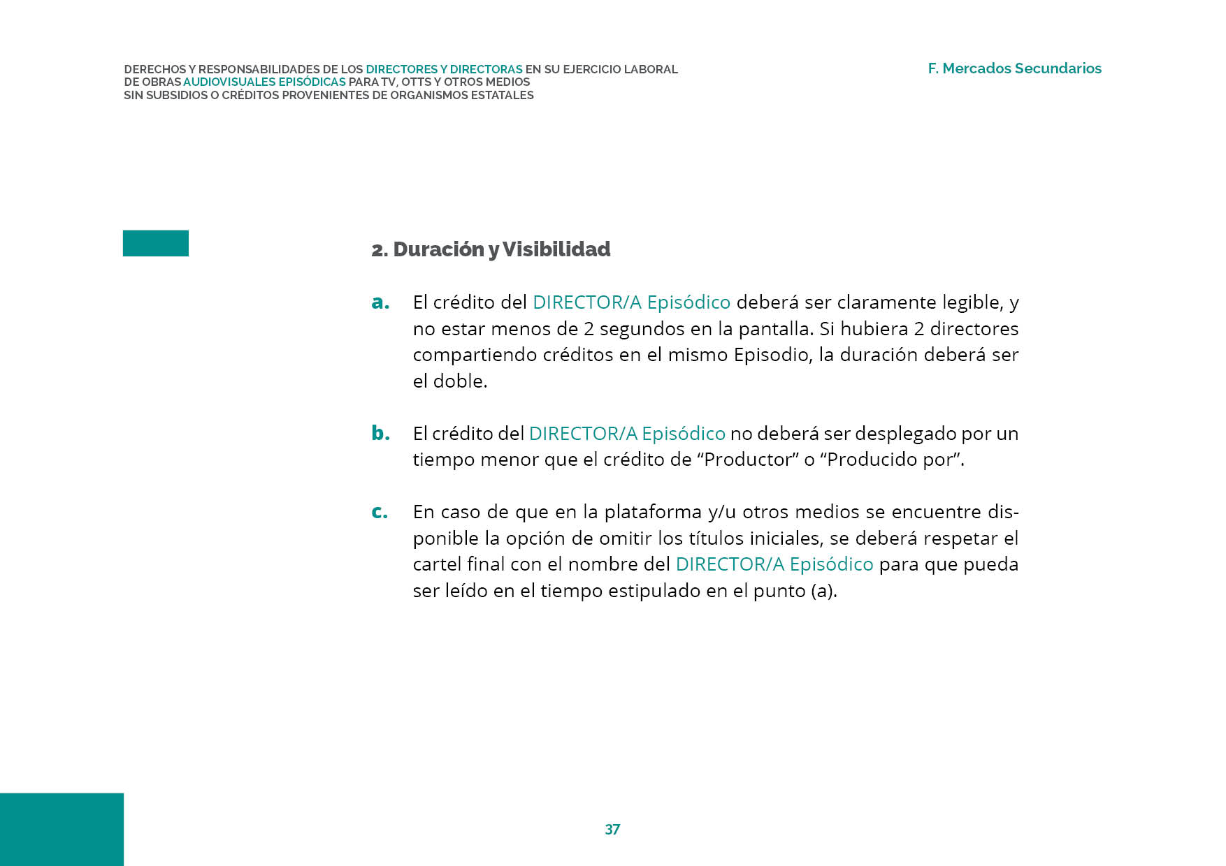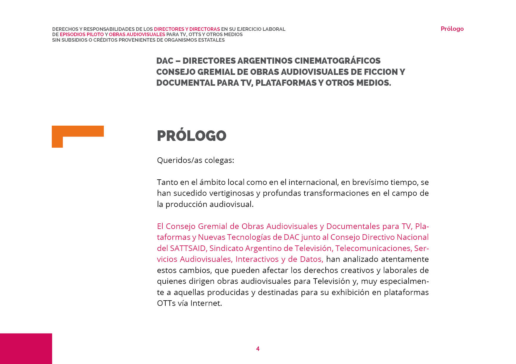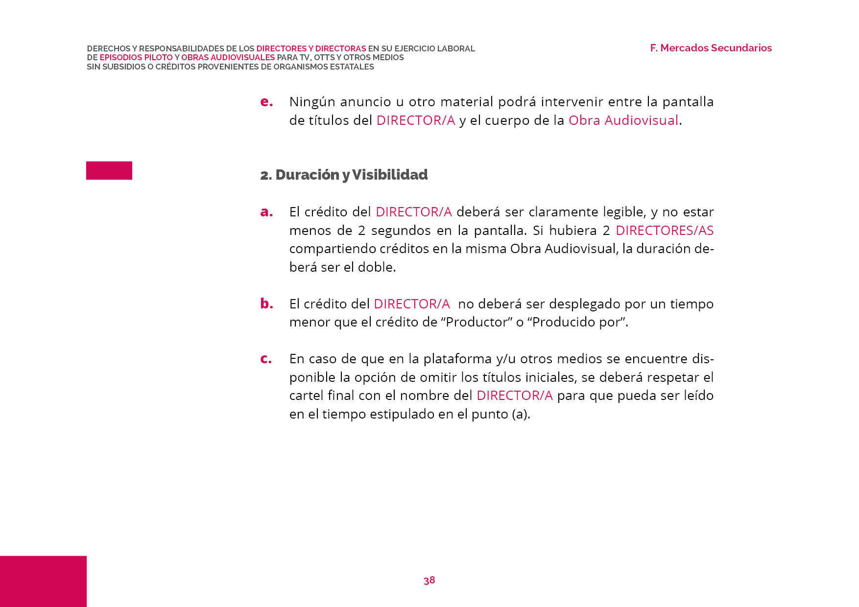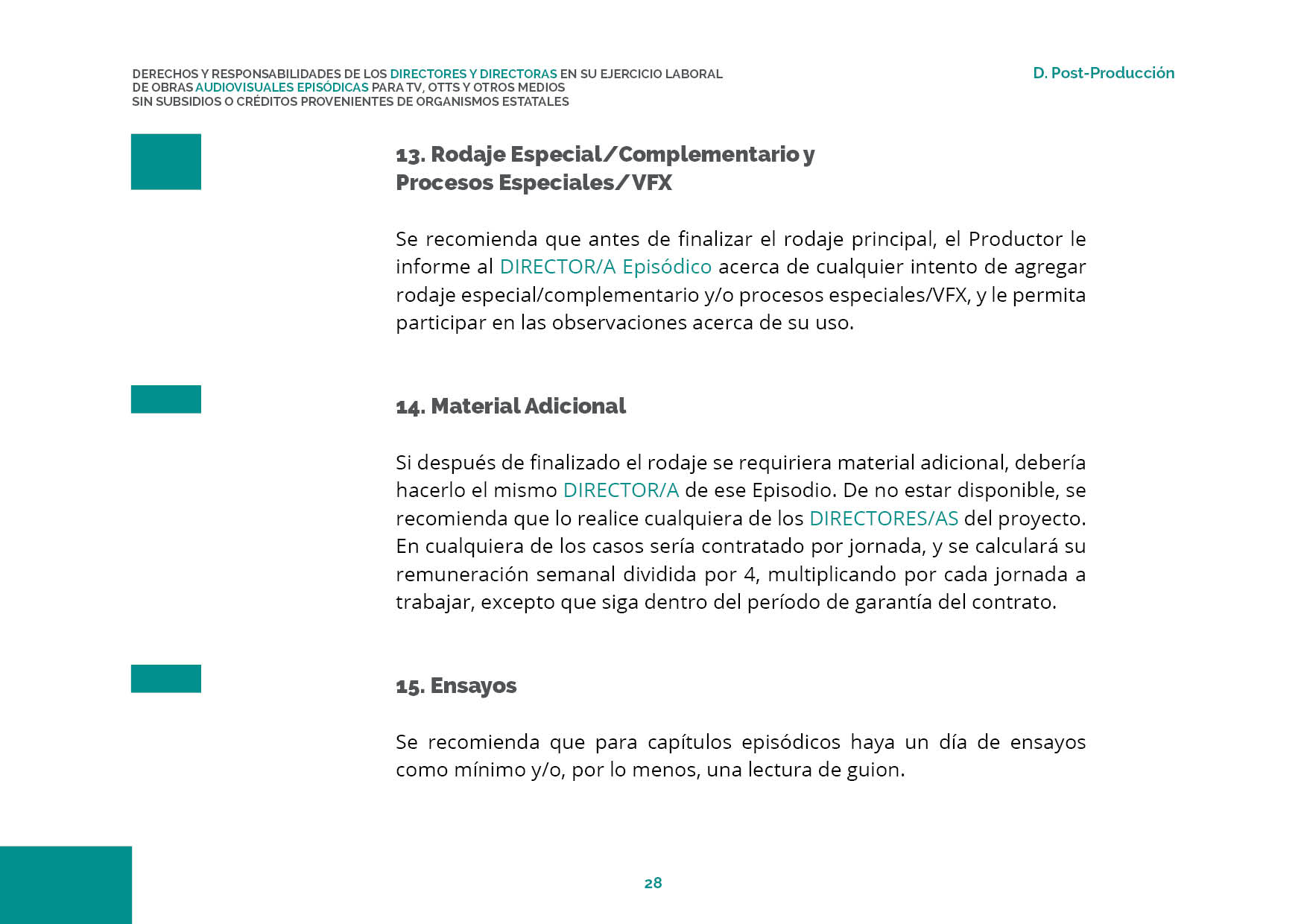 Y DE DERECHOS CREATIVOS Y LABORALES PARA LOS DIRECTORES Y DIRECTORAS AUDIOVISUALES.